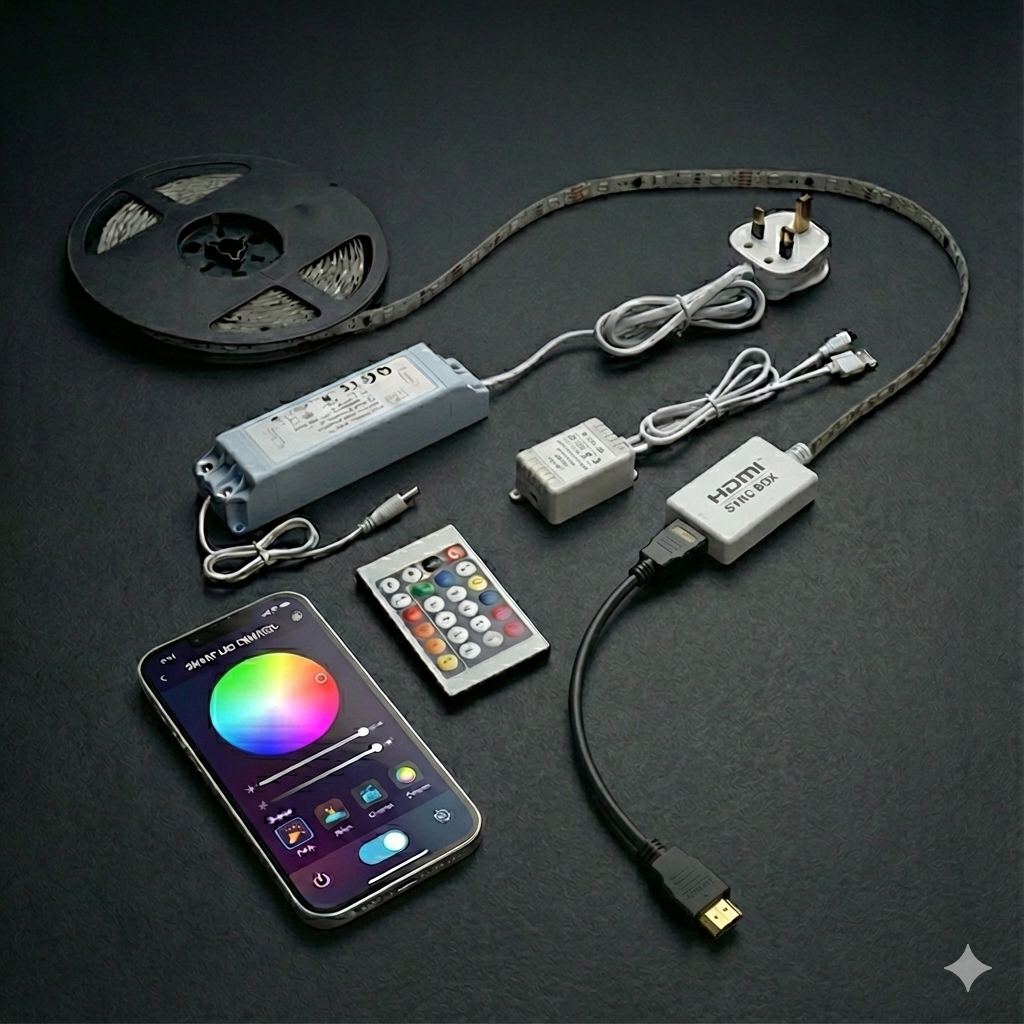 - Real-time HDMI colour sync – Lights track your screen content with low latency.